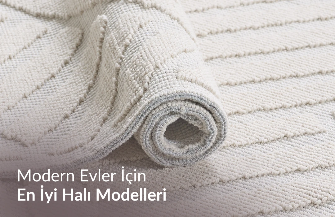 Modern ev dekorasyonu, halı seçiminde de sadelik ve zarafeti esas alır. Deseni fazla olmayan, düz renkli ya da geometrik desenli halılar tercih edilir. Halı, mekânın tüm havasını değiştirebilir; bu nedenle dekoratif tamamlayıcılık kadar dokusal uyum da önemlidir.